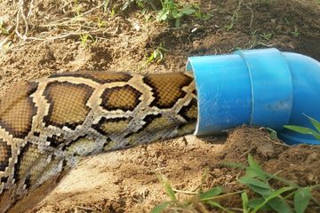 Jika ada ular yang berkeliaran di kebun lantai bawah tanah. Letakkan pipa paralon di dekat lubang saluran irigasi yang sudah dibuat. Bedanya kertas yang digunakan harus diganti dengan kotak yang lebih kuat dan umpannya diganti dengan tikus yang sudah mati.